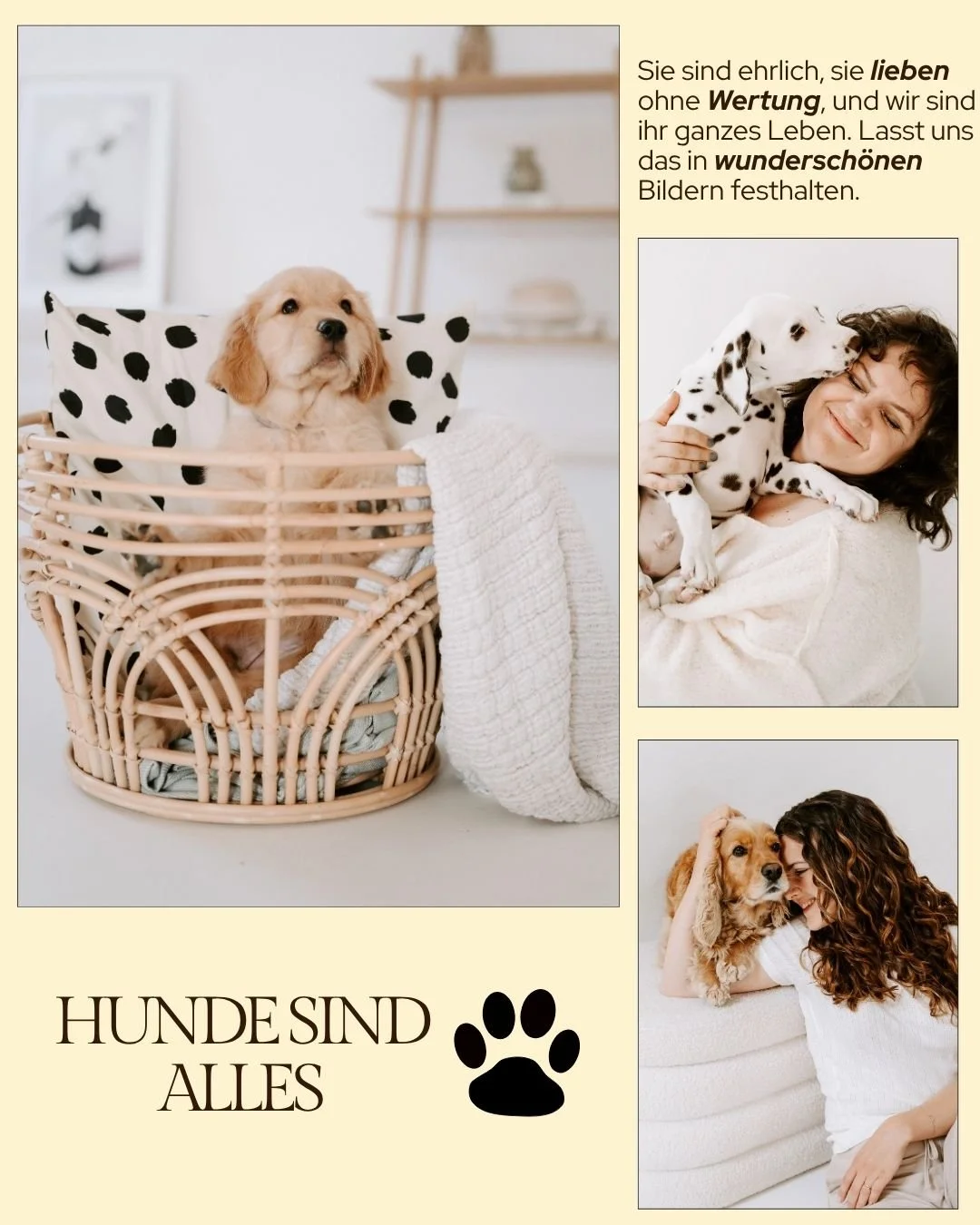 Gerade wenn ihr einen reizempfindlichen Hund habt ist das Studio einfach die perfekte Umgebung. Bei meinen Indoor-Shootings halte ich eure einzigartige Verbindung in entspannter Atmosphäre fest, natürlich, zeitlos und mit viel Herz.